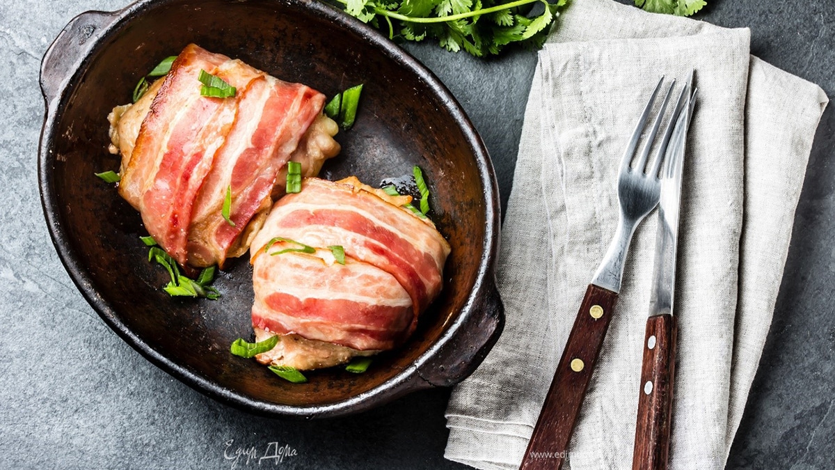 Куриные бедра, запеченные с беконом