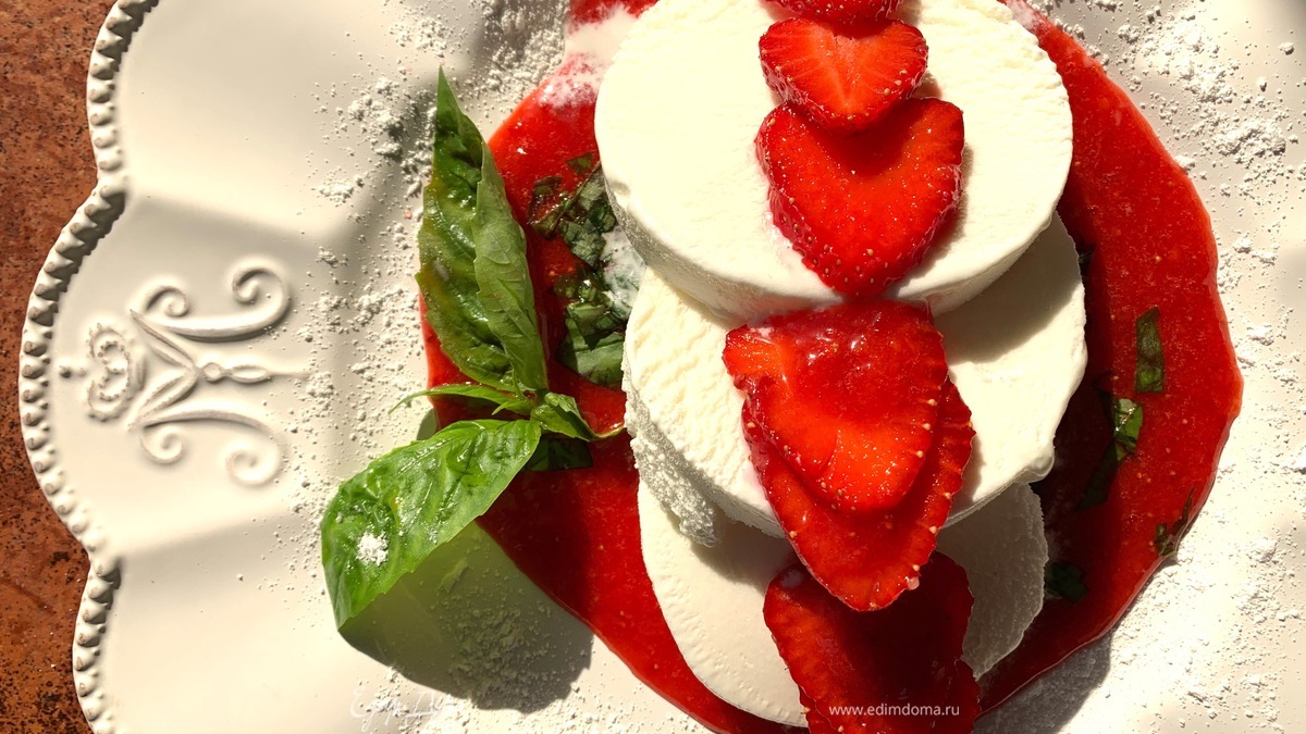 Выложить на тарелку клубничный соус, добавить базилик. - Шаг 5