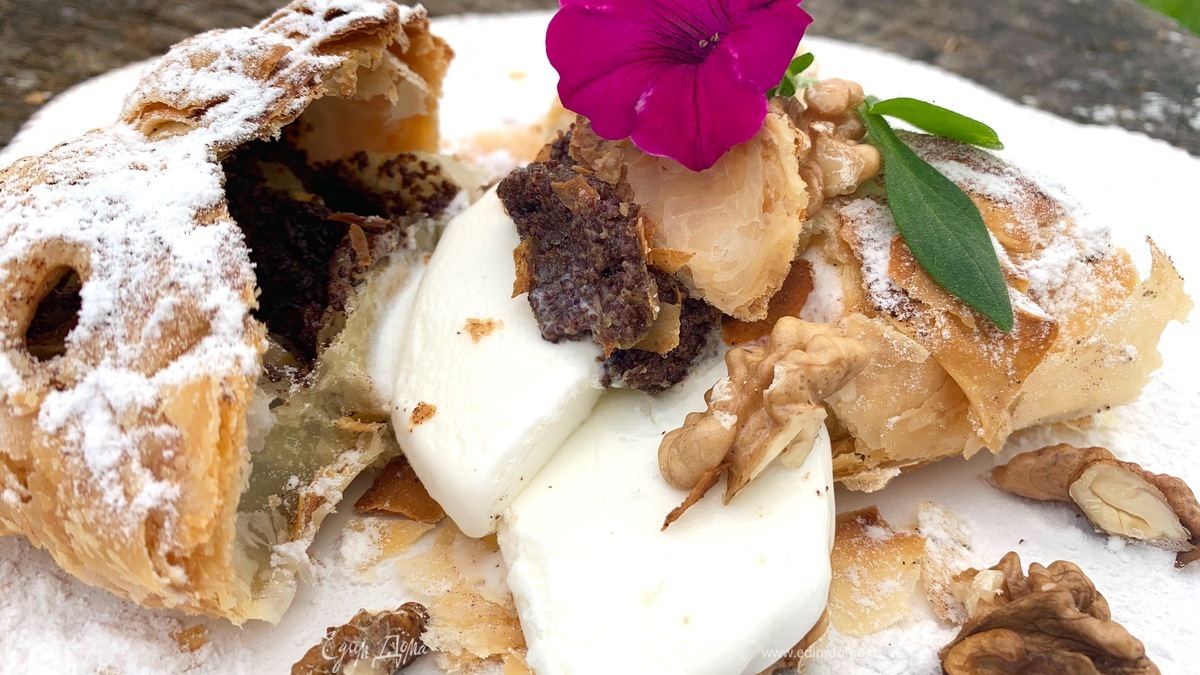 Яблочный пирог с маком и мороженым