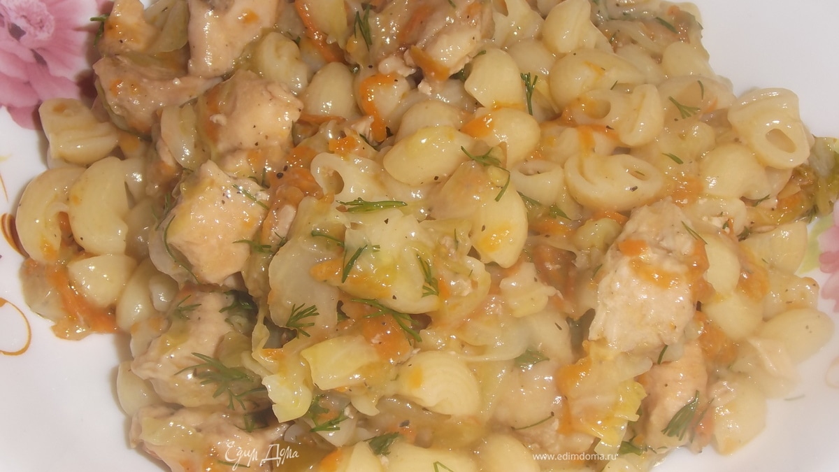 Куриную грудку нарезать, припустить на растительном масле с репчатым луком, солью и перцем до готовности. В конце готовки добавить соевый соус, тушить в течение 5 минут. - Шаг 2
