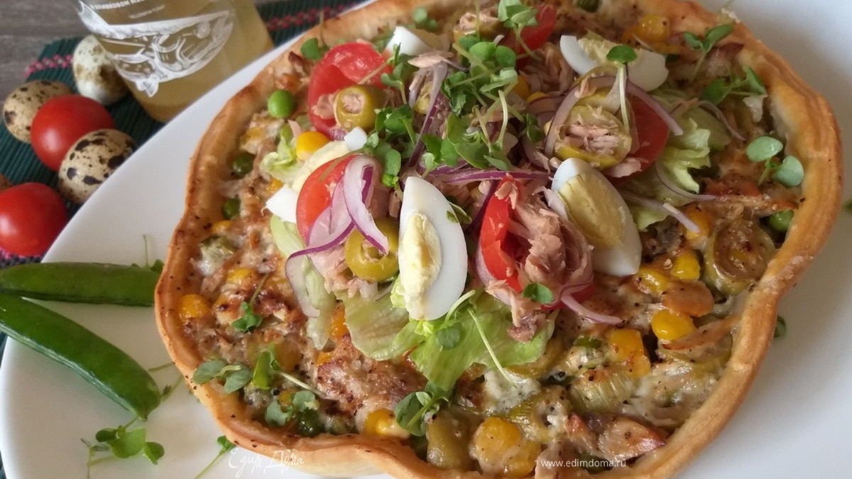Но просто повторять классический салат «Нисуаз» мне было неинтересно, поэтому предлагаю вам свою авторскую версию салата и пирога в одной тарелке)