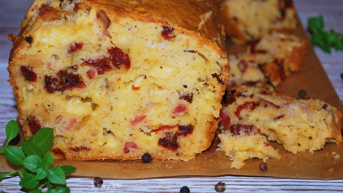 Очень вкусный закусочный кекс с вялеными томатами, беконом и сыром.