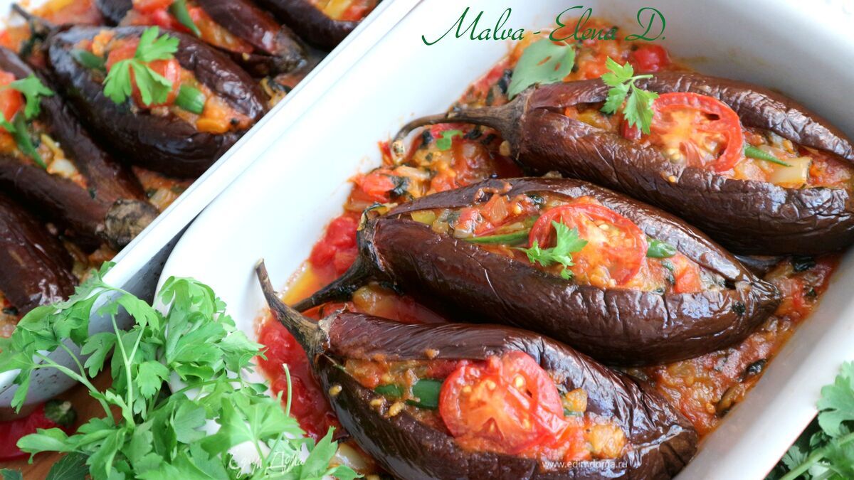 16Это очееь вкусное блюдо! Готовлю его не один год, позаимствовала у турков. Только в данном рецпте много возни ненужной. Я закидываю все уже прожаренные на сковороде овощи (помидоры, лук, болгарский перец, чеснок, мякоть баклажана, специи) сразу в сырые баклажаны. А баклажаны срезаю вдоль пополам, вырезаю сердцевину и прожариваю с овощами на сковороде, так мякиш становиться еще нежнее и с пропитанным вкусом баклажана. За 2 мин до готовности посыпаю тертым сыром и укропчиком до расплавленного состояния. Тут несколько поеимуществ: 1) не нужно ставить в духовку баклажаны дважды, на готовку блюда уходть 15 мин жарки, 30 мин в духовке. 2) очищенные от мякоти баклажаны вмещают в себя больше начинки, соотв-но получаются сочнее 3) наличие мяготи в заправке придает ему особый «баклажаний» вкус и, как писала выше, сочность. 4) срезанная половинка баклажана открывает большее пространство начинки, что выглядит более аппетитно, нежели целый и чуток прикрытый баклажан. Да и есть половинку удобнее. К тому же в 2 раза меньше баклажанов уходит, хотя начинки больше. Это ни в коем случае не критика, а так сказать, апдейт и лайфхак.