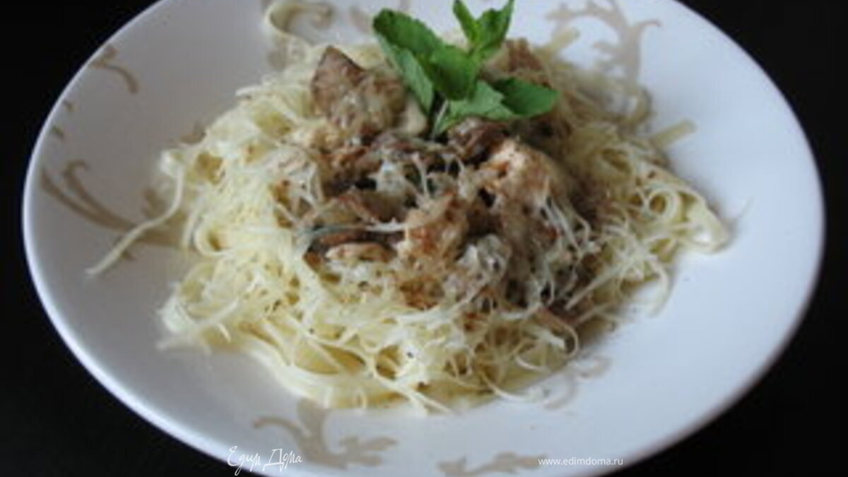 Я частенько готовлю пасты, мои домашние уже привыкли к некоторым рецептам. Обычно с курицей и грибами я делала сливочную пасту, но в этот раз решила изменить обычному сочетанию. Вместо того, чтобы добавить сливки, я просто обжарила ингредиенты с луком. Получилось не обычно и вкусно, лук, со сливочным масло придал деревенский аромат блюду. В следующий раз сделаю домашнюю лапшу, получится еще вкуснее!