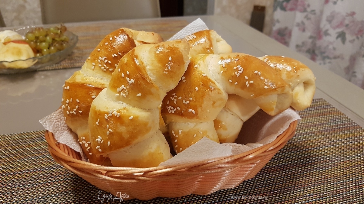 Рогалики смазать желтком и посыпать кунжутом. - Шаг 5