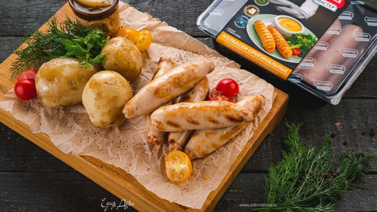 Тем временем на сковороде-гриль пожарьте колбаски «Оригинальные» ТМ «Петруха Мастер». - Шаг 6