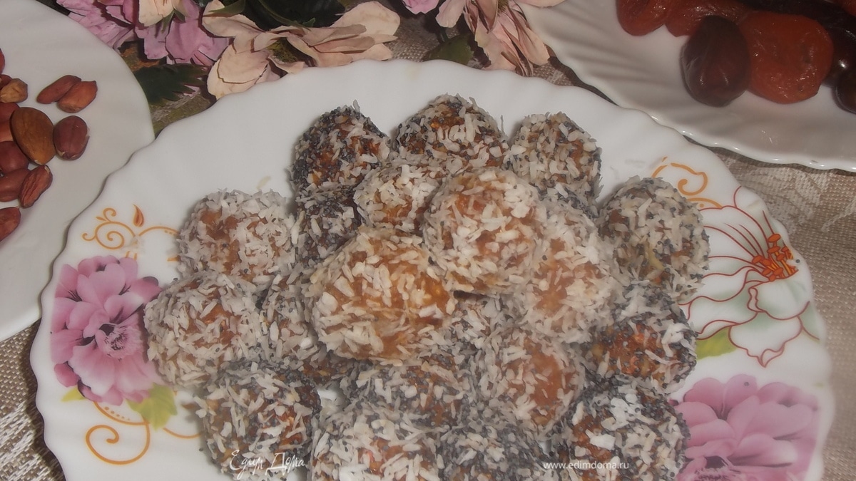 Скатать порционные шарики. Обвалять в маке и кокосовой стружке.