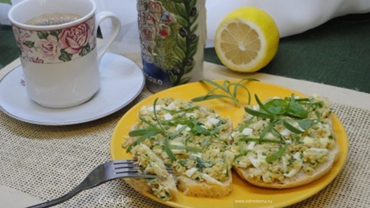 Выкладываем смесь на куски домашнего хлеба (мы едим только свой), по желанию еще посыпаем рубленой зеленью базилика и листочками розмарина (он у меня на окне растет) и обязательно сбрызгиваем ароматным оливковым маслом. - Шаг 4