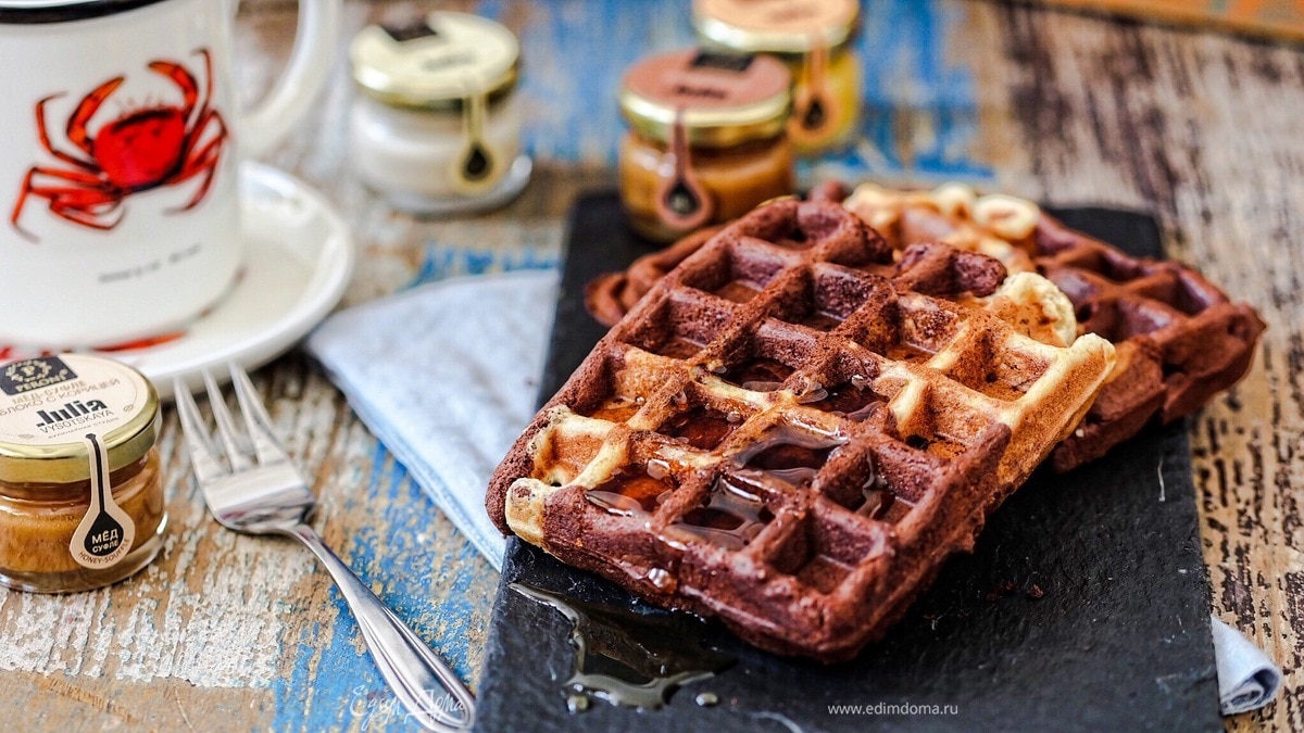 Для тех, у кого бананы уже переспели, несъеденная шоколадка завалялась в холодильнике, а вафельница давно пылится в кухонном шкафу, предлагаю испечь к завтраку вот такие красивые и очень вкусные вафли!