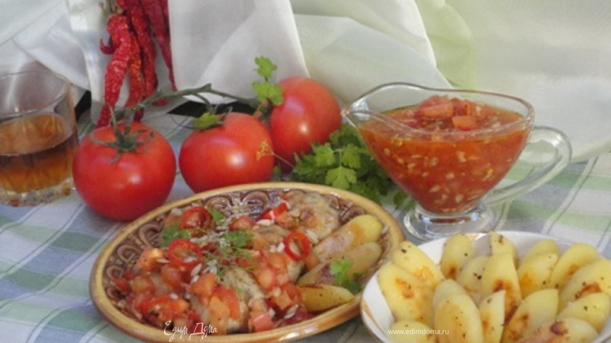 Для соуса помидоры обдать кипятком и очистить от кожицы, удалить семена и нарезать мякоть кубиками (хотя можно и сочную внутренность оставить, почему бы и нет?). - Шаг 6