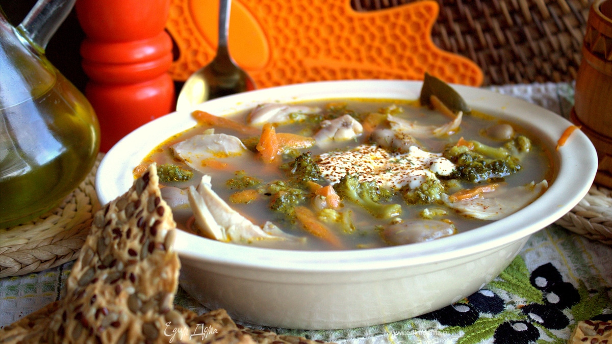 Очередной суп с овощами и бобовыми. Из бобовых можно использовать стручковую фасоль, зеленый горох. Кроме брокколи можно использовать цветную капусту. Идею почерпнула у Мин Гузелька, но исключила картофель. Летом почему-то его не хочется. Благодаря бобам достаточно сытно.