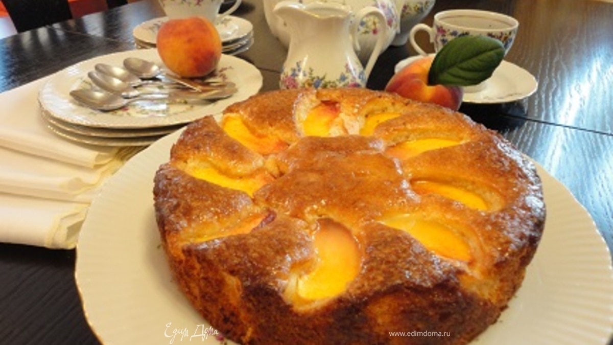 С сочным персиком и лимонной глазурью этот пирог станет прекрасным сладким аккомпанементом к чашке чая. К тому же он не содержит молочных продуктов. Сливочное масло заменено растительным, что способствует созданию пушистого легкого бисквита.