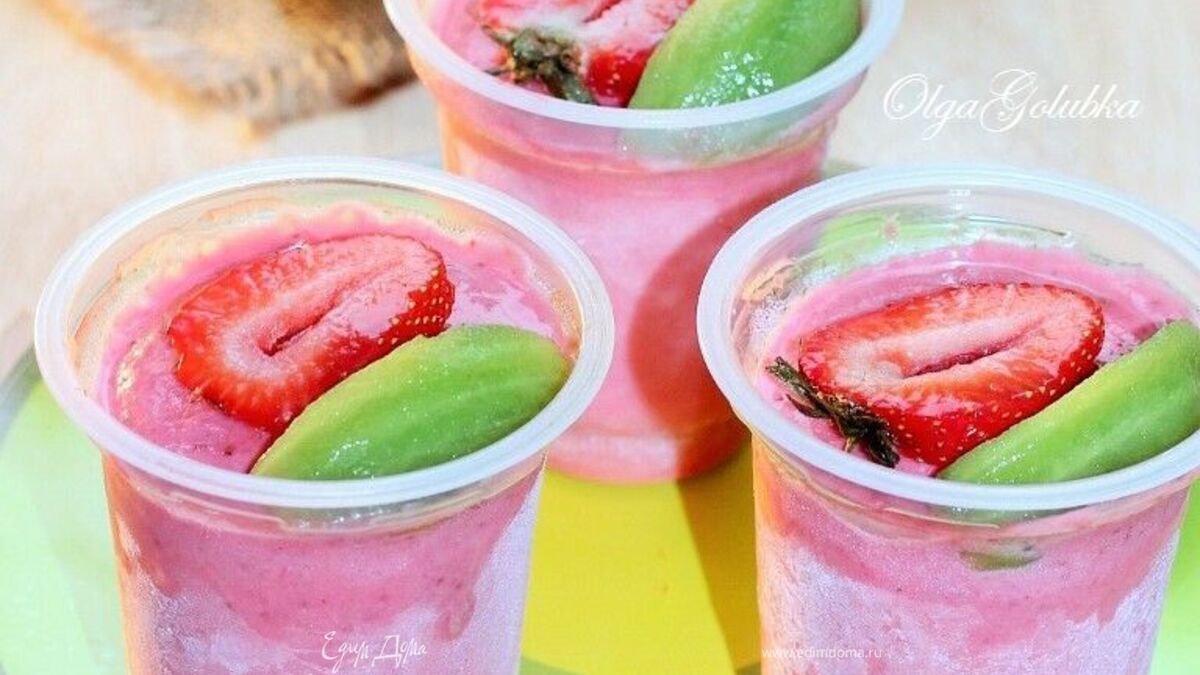 Убрать стаканчики в морозилку до полного застывания мороженого. Перед подачей на стол переложить мороженое из морозилки в холодильник на полчаса. Затем украсить ягодой и дольками фруктов. - Шаг 5