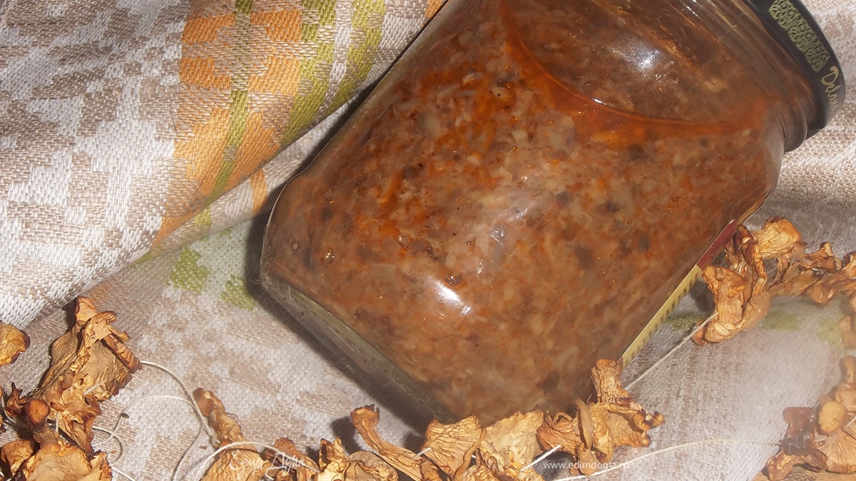 На 2 кг отварных грибов — аджика грузинская (1–2 ст. л.). Грибы отварить в подсоленной воде. Слить через дуршлаг и прокрутить через мясорубку. Томатный соус смешать с аджикой, добавить соль, перец по вкусу. Все соединить с прокрученными грибами, перемешать и добавить растительное масло. - Шаг 2