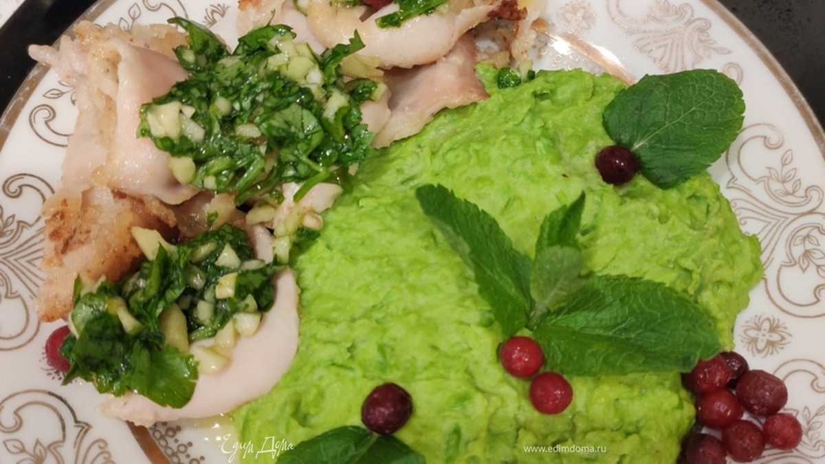 Блендером делаем пюре из гороха, добавляем немного соли и в получившееся пюре льем сливки и перемешиваем.