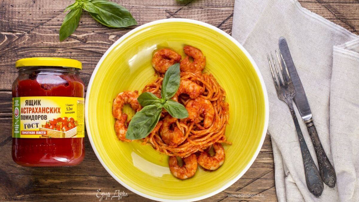 Паста с креветками в томатно-сливочном соусе