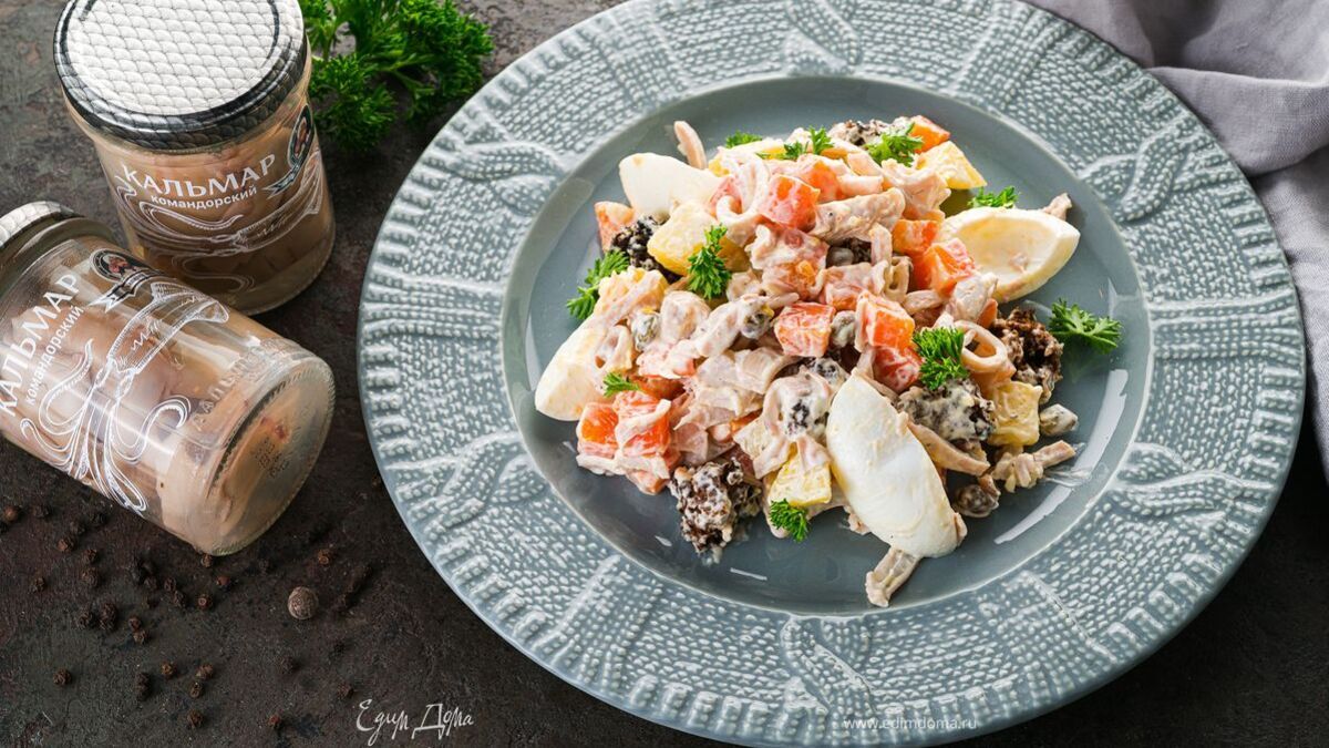 Салат с кальмарами и картофелем