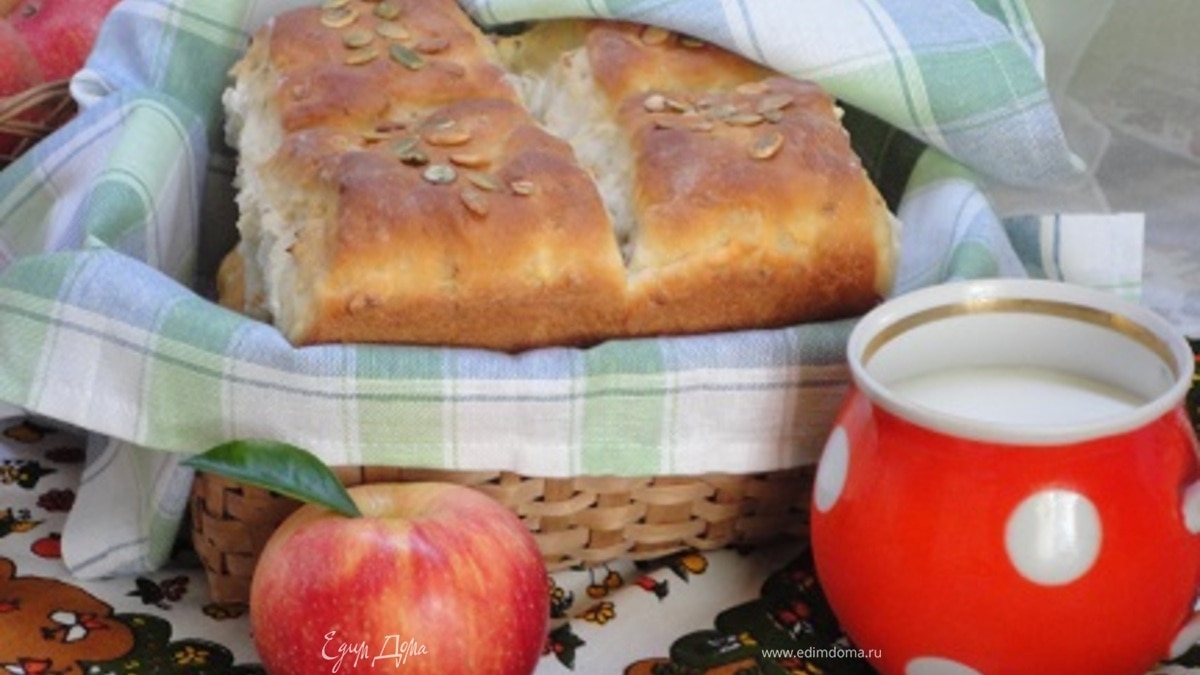 Включите духовку на разогрев до 220°C. Подошедшее тесто смажьте водой и посыпьте оставшимися тыквенными семечками. Выпекайте 10 минут с горячей водой, потом убавьте температуру до 200°C и выпекайте еще 25–30 минут до готовности.
