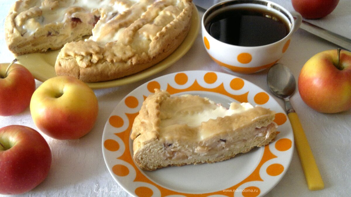 Продолжаю свой марафон яблочных пирогов. Сегодня это пирог из песочного теста с начинкой из яблок и слив. Еще теплый пирог заливается взбитой сметаной с сахаром и стоит так до полного остывания. Для начинки этого пирога можно брать не только яблоки, но и груши, персики, абрикосы, ягоды. Если использовать сочные фрукты и ягоды, то перед начинкой на тесто нужно насыпать немного крахмала для впитывания сока. Пирог получается очень вкусным. Готовьте и угощайтесь!