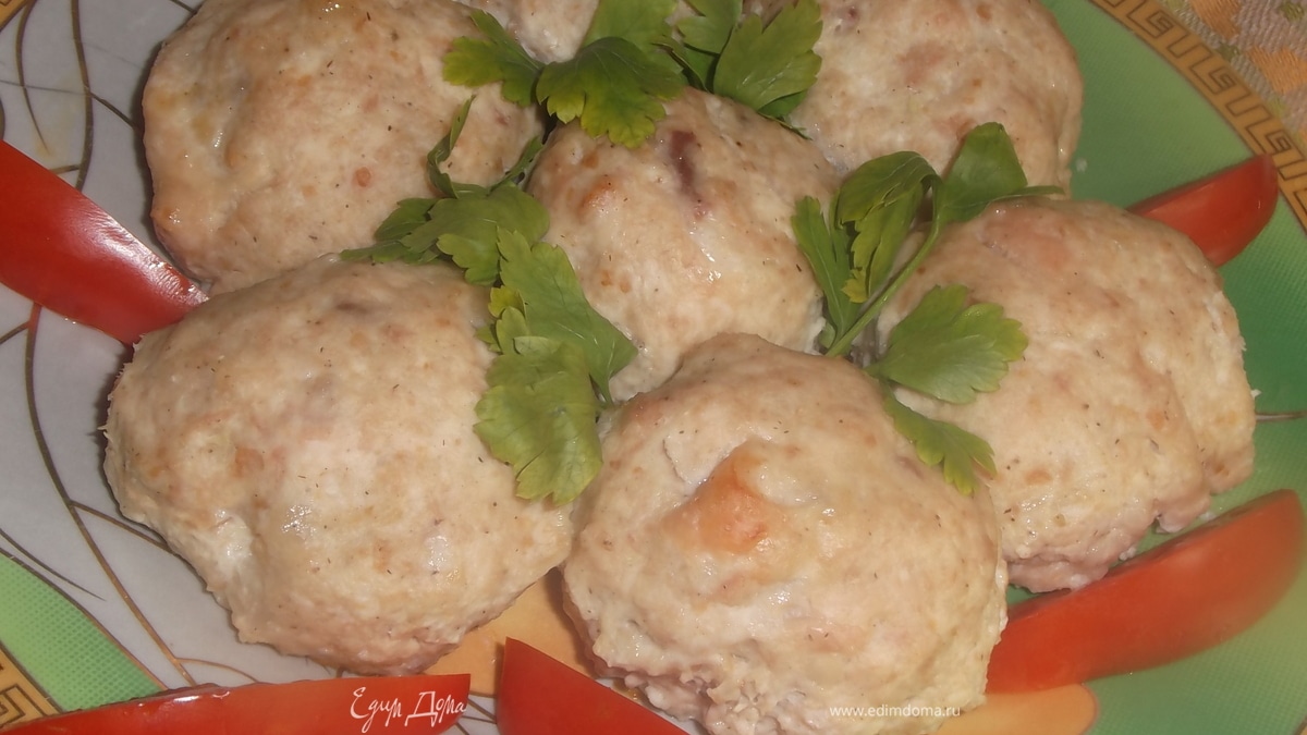 Курицу отделить от костей. Мясо, размоченный в молоке белый хлеб, репчатый лук пропустить через мясорубку или измельчить блендером. Свиное сало мелко нарезать. Соединить все ингредиенты. Посолить, поперчить. Фарш хорошо перемешать. Отбить. - Шаг 2