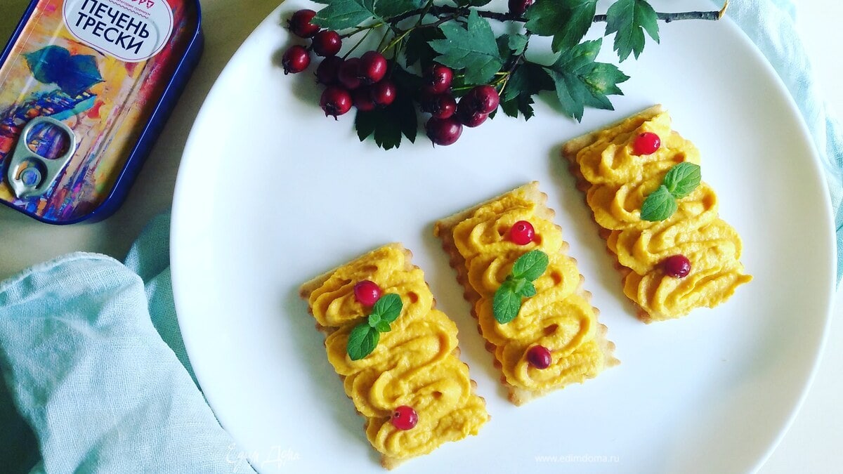 Крекеры с муссом из моркови и печени трески