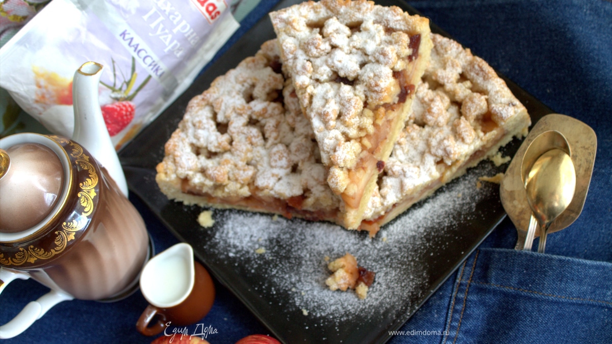 Танюш, лови фотоотчет!!! Пирог получился именно таким, как ты описала, хрустящее песочное тесто и нежная ароматная яблочная начинка, которой очень много. Как раз клала только варенье без сахара и получилась начинка с кислинкой и тесто сладенькое, очень и очень вкусно!!!!!!!!😋😋😋 Большое тебе спасибо от моей семьи и коллег на работе, пирог большой, всем досталось))😘😘