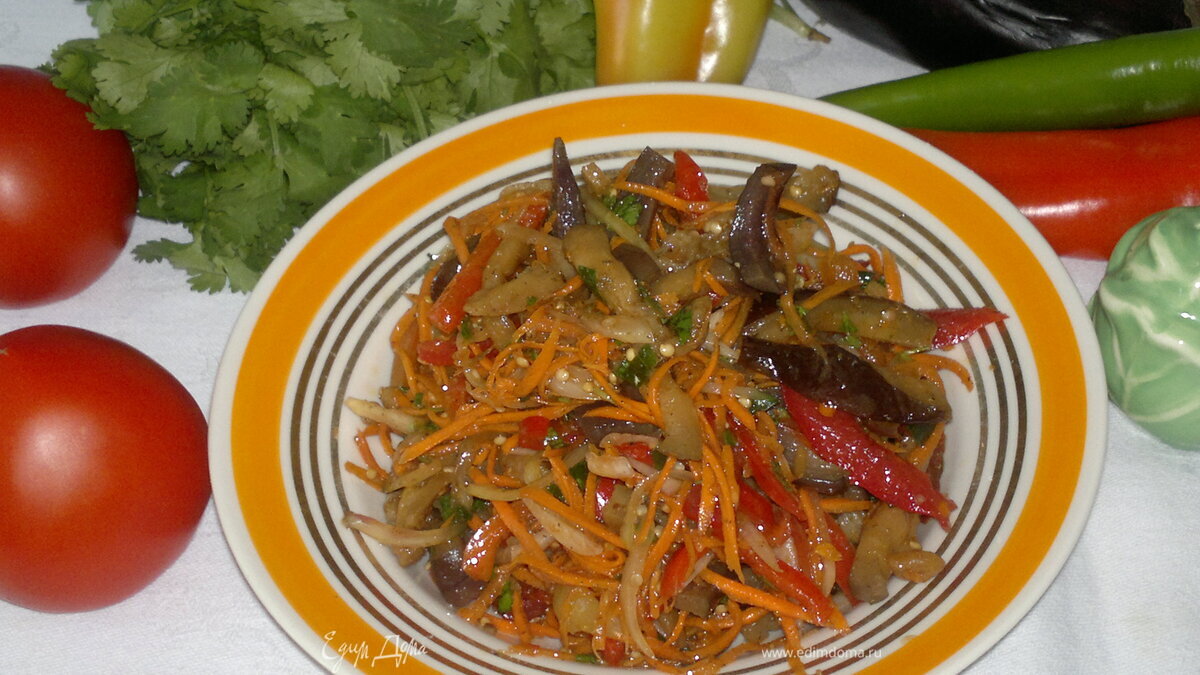 Вкусный овощной салат по-корейски готов. Угощайтесь! Приятного аппетита!