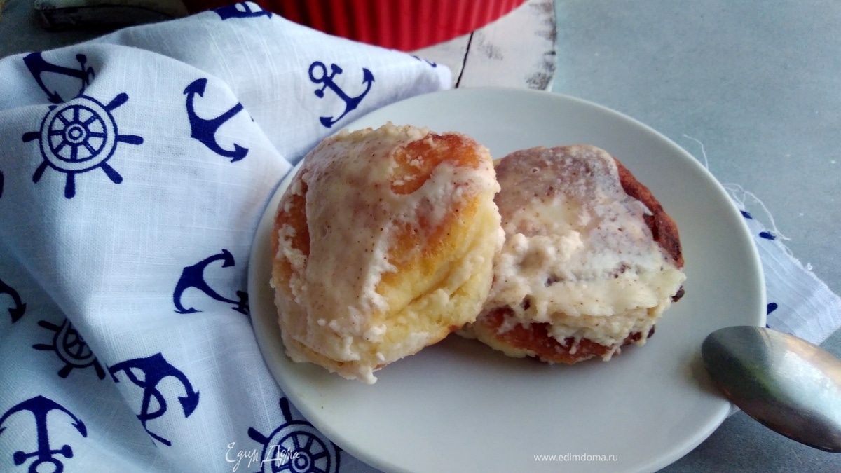 Духовку разогреть до 160°C. Смешать все для заливки. Вместо корицы можно взять ваниль или вообще не добавлять специи. Налить по ложке заливки на каждый сырник и поставить в духовку. Запекать 15 минут. - Шаг 7
