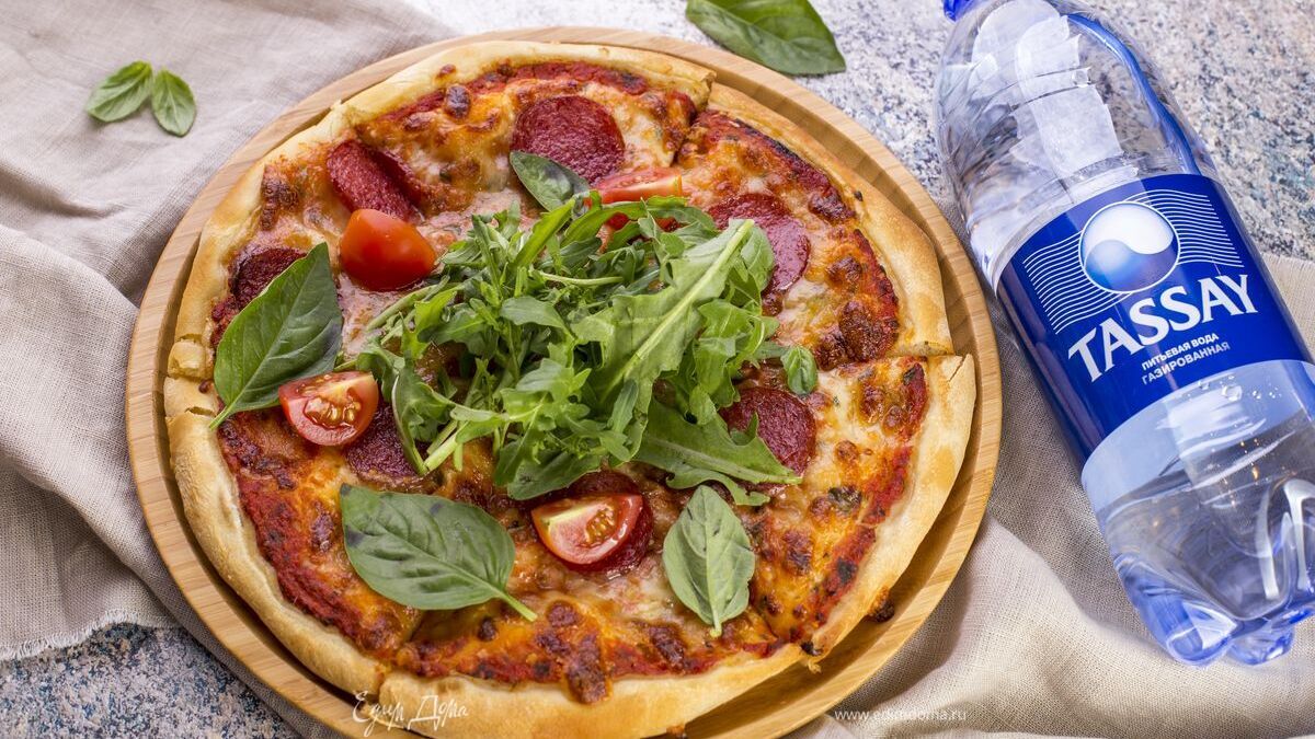 Добавьте к тесту газированную воду Tassay. Замесите упругое и эластичное тесто. Накройте тесто пищевой пленкой и оставьте на 20 минут. - Шаг 4