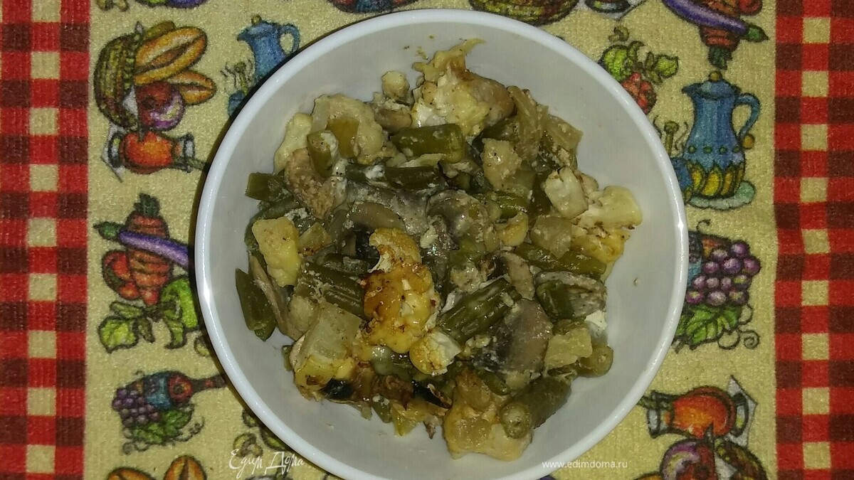 Как оказалось, стручковая фасоль, цветная капуста, шампиньоны и лук, запеченные в духовке под сырной корочкой, — это очень вкусно!