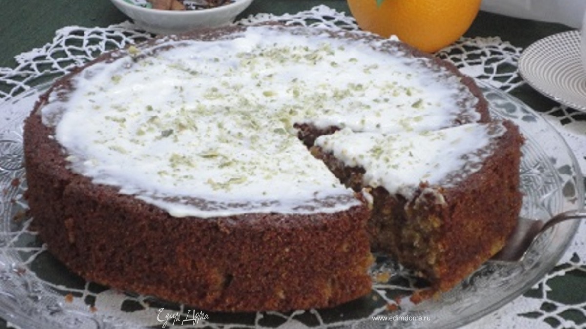 Готовый кекс оставьте в форме минут на 15, затем проткните его несколько раз тонкой деревянной шпажкой и полейте сиропом, предварительно удалив гвоздику и палочку корицы. Теперь можно убрать бортики и дать кексу окончательно остыть. Готовый пирог смажьте сверху йогуртом и посыпьте измельченными орехами. - Шаг 7