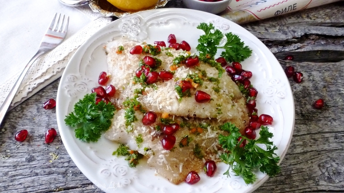 Выложить обжаренное филе тилапии на тарелку и полить приготовленным соусом с гранатом. Приятного аппетита!