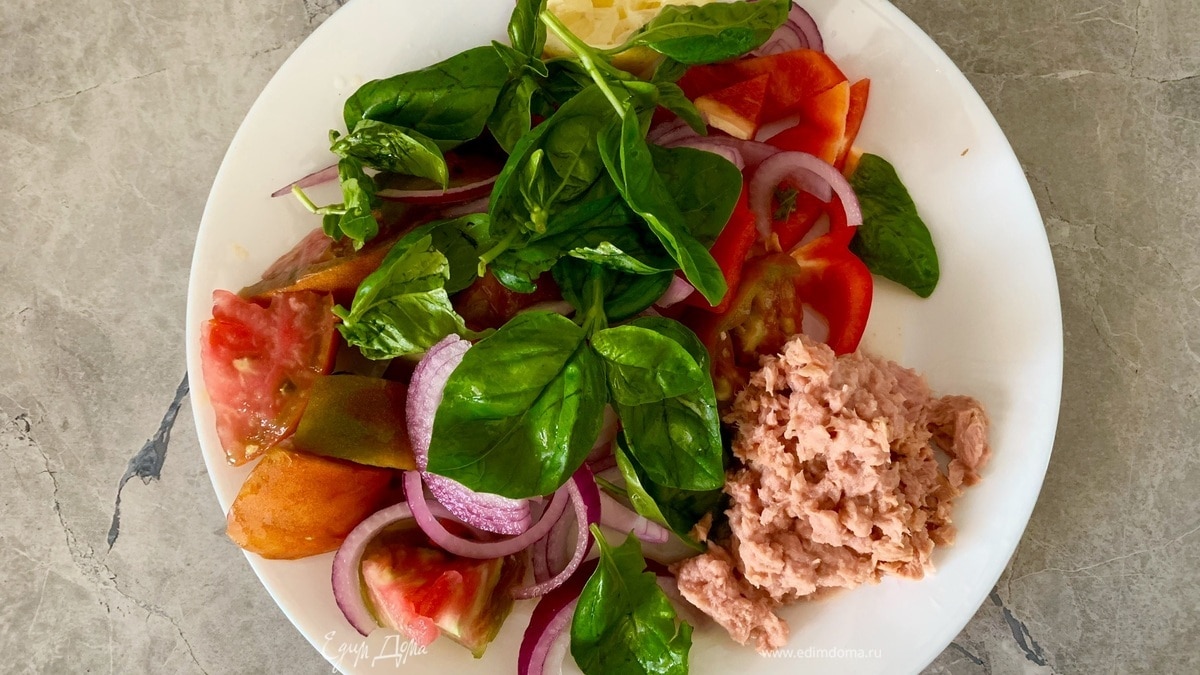 Открыть банку с тунцом, выложить содержимое к овощам, все хорошо полить соком лимона. В салате нет соли, но при желании можно ее добавить. Приятного аппетита!