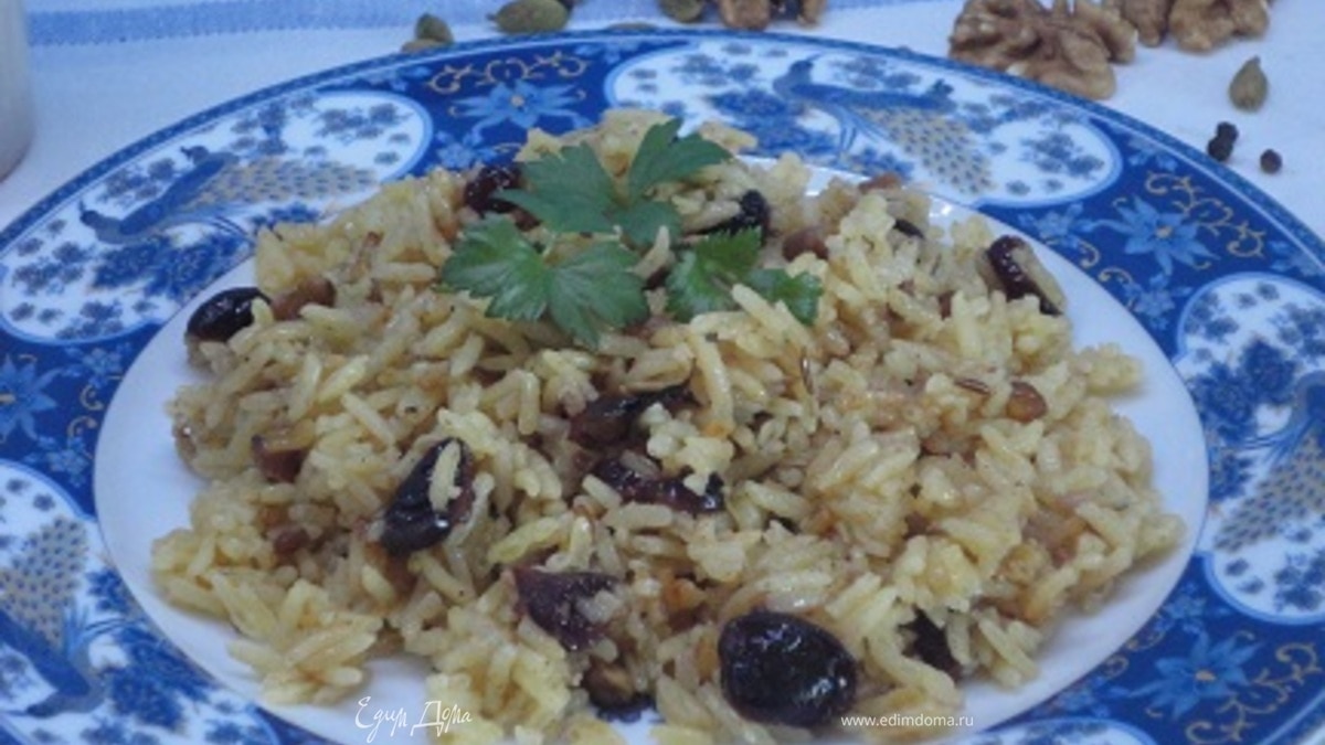 Я немного похулиганила с рецептом: вместо изюма использовала вяленую клюкву. Получился плов с северной изюминкой :)