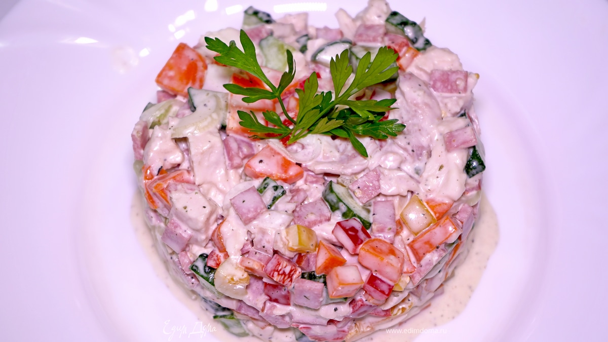 Очень вкусный и сочный салат из простых продуктов, который украсит повседневный или праздничный стол.