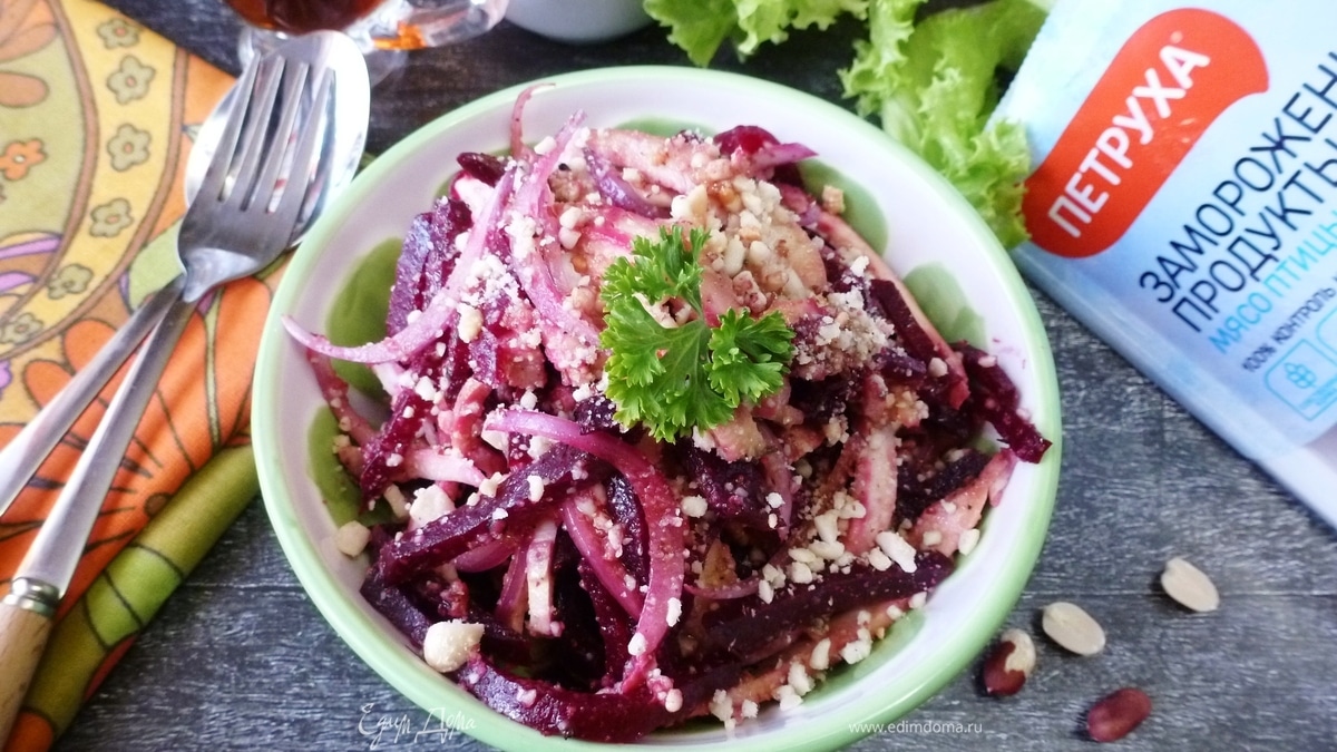 Салат из курицы и свеклы с арахисом