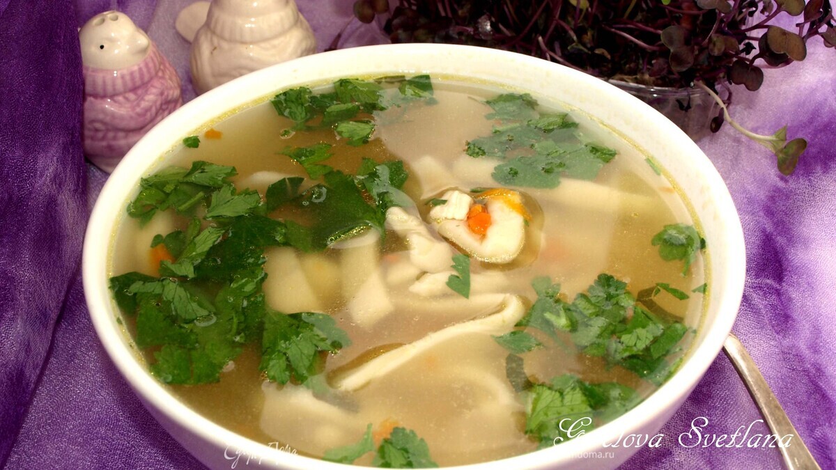 Старинное русское блюдо — куриная лапша. В 1816 году увидела свет наша первая кулинарная книга «Русская поварня» одного помещика, кулинара и просветителя Владимира Алексеевича Левшина. В книге собраны рецепты традиционной русской кухни, и куриный бульон с домашней лапшой занимает почетное место в ярком калейдоскопе блюд русской кухни.