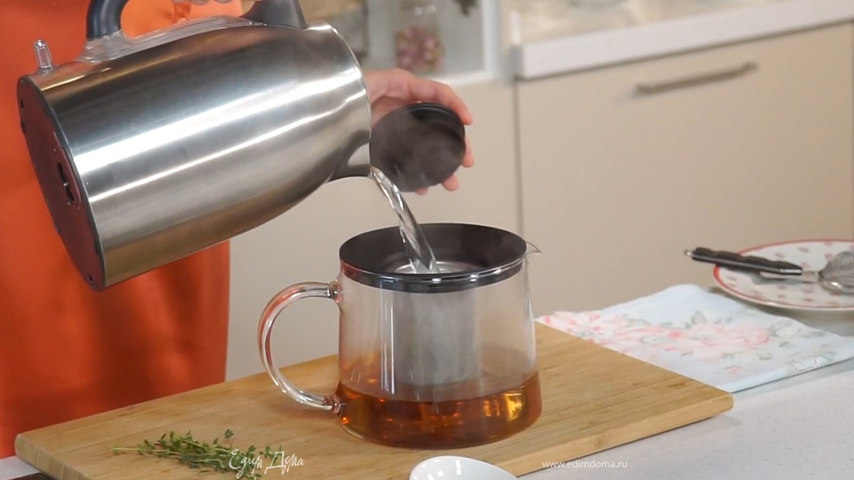 В заварочный чайник добавить черный чай, тимьян и специи. - Шаг 2