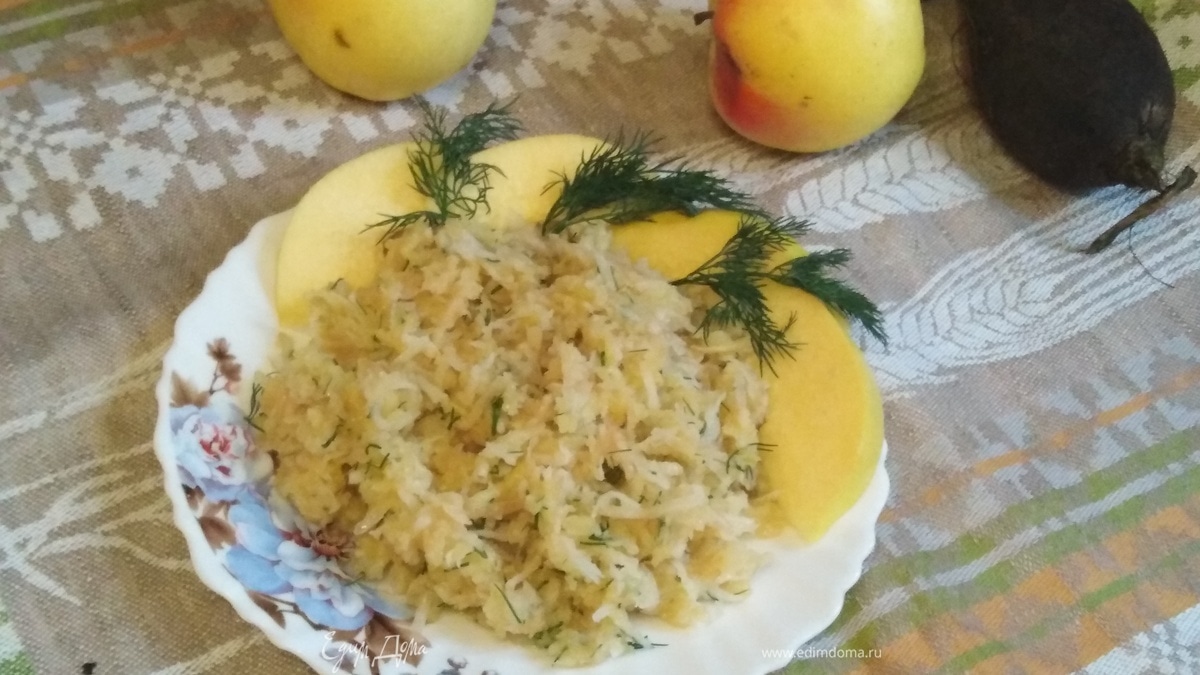 Салат из черной редьки с айвой и яблоком