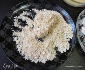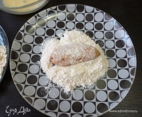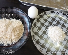Подготовить муку, яйца и вкусные панировочные сухари.