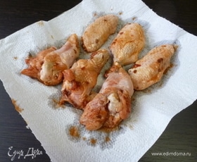 Куриные крылья надо хорошо промокнуть от влаги. Можно даже отжать руками. Чтобы панировка лучше держалась, лишняя влага не нужна.