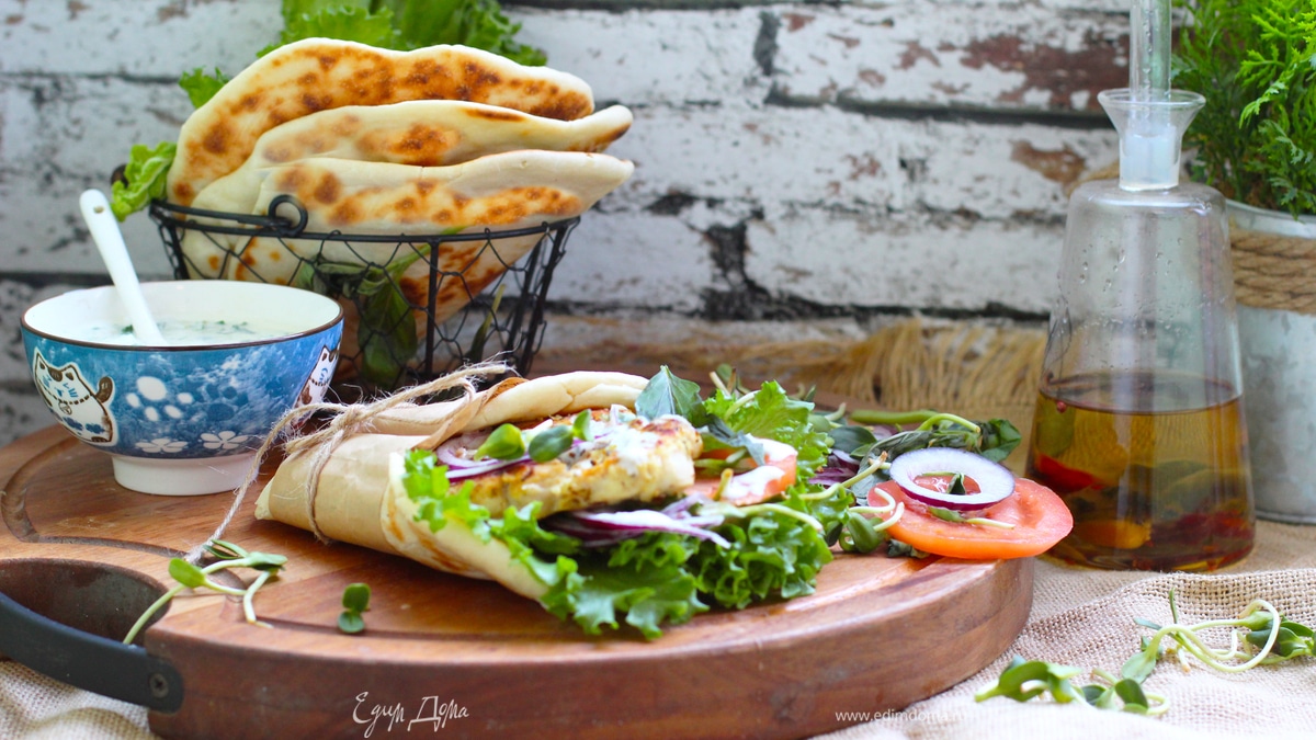 Гирос из курицы с соусом дзадзики и овощами