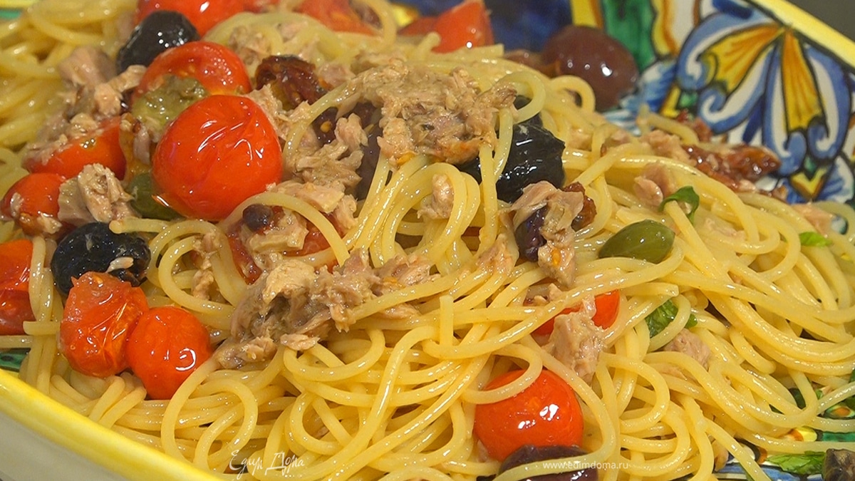Для этого блюда подойдут некислые томаты. Также можете взять консервированные помидоры в собственном соку. Не забудьте удалить у каперсов хвостики. По желанию в соус можно добавить немного воды, в которой варились спагетти.