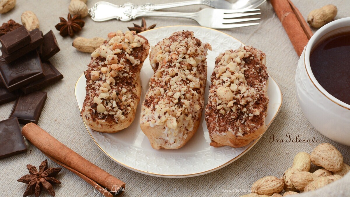 Эклеры с заварным кремом и кремом «коровка»