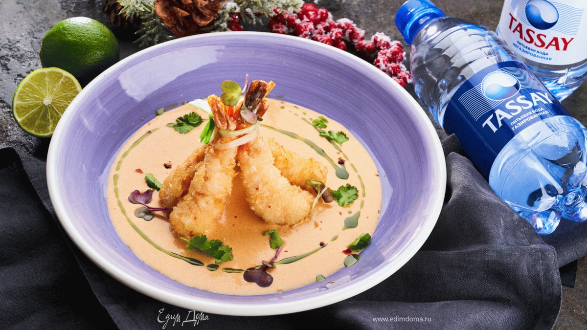 В сотейник налейте растительное масло (по высоте должно быть около 5 см). Разогрейте его. Окунайте креветки в горячее масло. Обжаривайте до золотистого цвета, перевернув один раз, около 3 минут. - Шаг 9