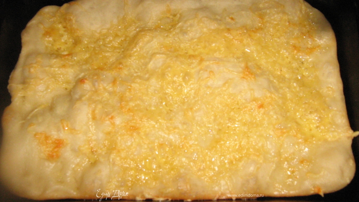 - Шаг 2Смазываем маслом форму, тесто раскачиваем или разминаем руками до размеров формы. Масло натираем на терке и раскладываем по всему тесту, дальше обильно посыпаем тертым сыром и в духовку на 20-30 минут. Приятного аппетита!!!