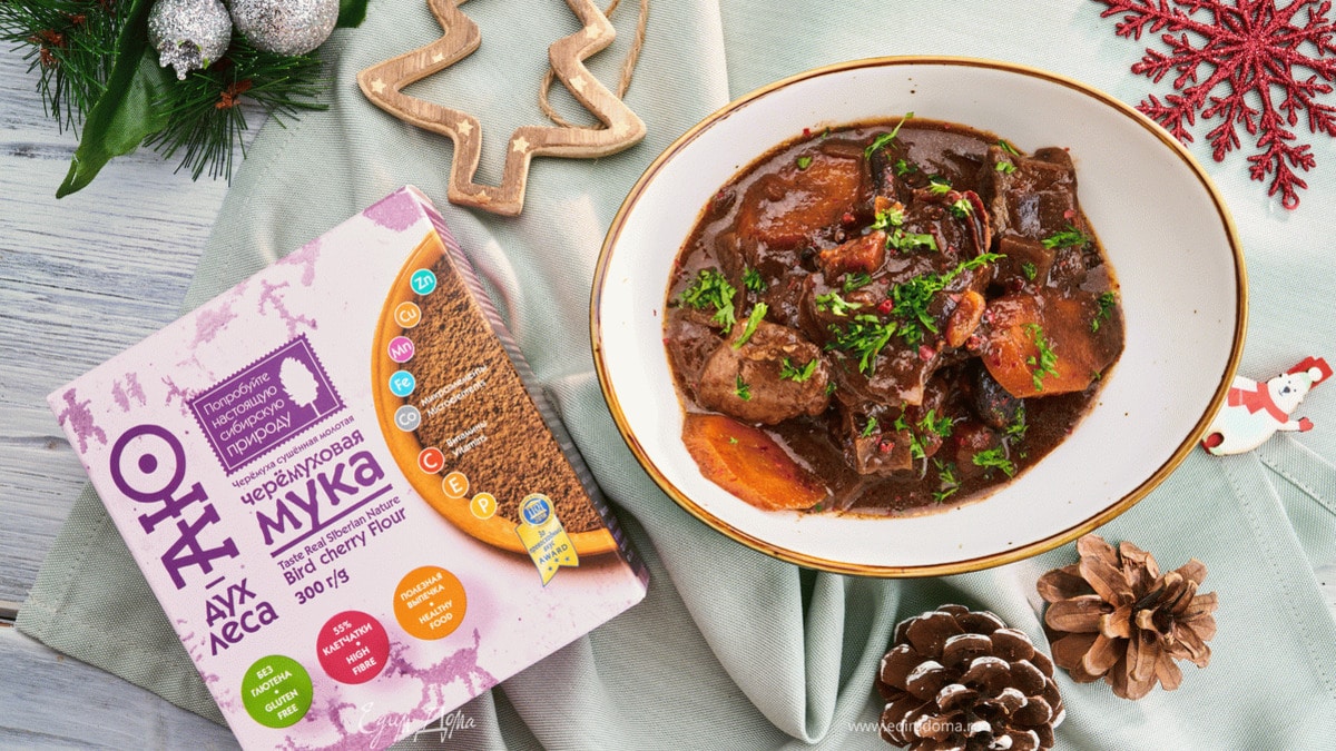 Для загустения соуса всыпьте черемуховую муку ТМ «Аю — дух леса». На этом же этапе добавьте сахар. Томите под крышкой несколько минут. - Шаг 9