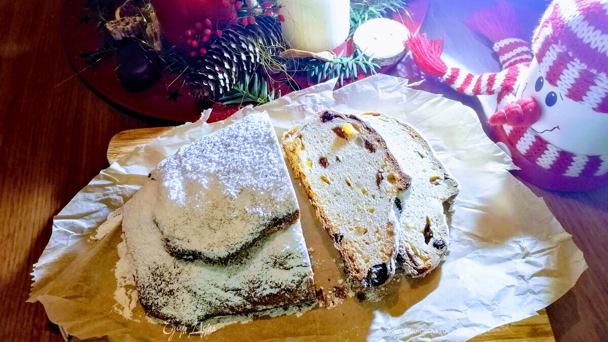 Stollen или Christstollen — типичная немецкая Рождественская сдоба. История этого рецепта насчитывает века. Легенда рассказывает, что форма этой выпечки должна напоминать запеленованного младенца Иисуса. Первое изготовление штоллена историки относят к XV веку, а точнее первый раз штоллен упомянут в 1474 году в документах госпиталя San Bartolomeo. Изначально, следуя церковным догмам, люди готовили штолен из муки, дрожжей и воды, исключая масло и молоко. Назывался он Striezel (dolce insapore — сладость без вкуса). Поэтому принц Ernst von Sachsen и его брат принц Albrecht выпросили разрешение Папы для использования в выпечке масла и молока. Рецептов штоллена на сайте предостаточно, каждый несколько отличается от предыдущих. Попробуйте и такой вариант штоллена, рецепт которого я позаимствовала у Карины.