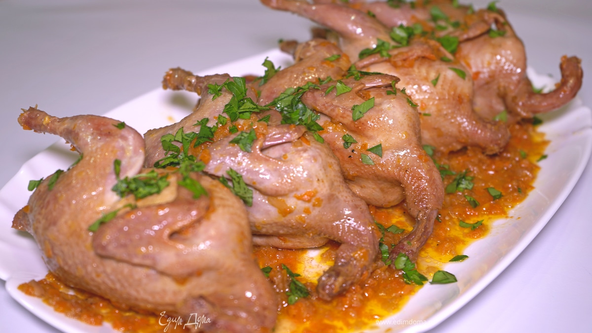 Можно посыпать эти перепела свежей зеленью и подать с любимым гарниром. Перепелки по этому рецепту невероятно нежные, тающие во рту. Будут очень красиво смотреться на праздничном столе!