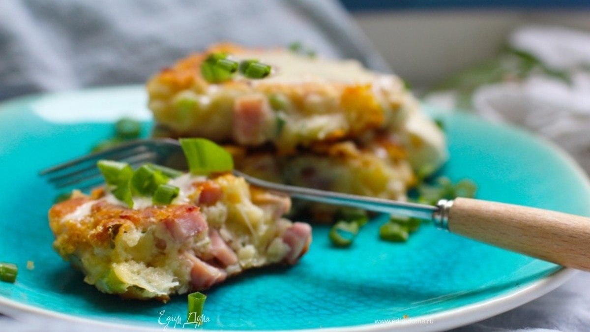 Оладьи с ветчиной, сыром и зеленым луком